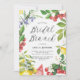 Watercolor Verano Frutos Invitación a Brunch Bridal Floral | invitar a su familia y amigos a su brunch nupcial con esta invitación al personalizable. Cuenta con ilustraciones acuáticos de limones, arándanos, sandía y follaje. Personalizar la parte posterior de la invitación cambiando el fondo a cualquier foto o imagen. Esta invitación botánica es perfecta para brunches de primavera y verano.