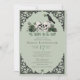 Esta elegante invitación gótica a la ducha de novias irlandesa "Til Death Do Us Part" incluye ilustraciones temáticos góticos e irlandeses hechos a mano con tinta negra, mostrando 2 cráneos y un cuervo negro adornado con rosas verdes, hojas, bayas, flores silvestres y tréboles verdes. La parte posterior presenta un bonito patrón con estos elementos. Elegante fondo verde sabio. Todo el texto es editable.