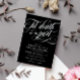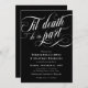 Elegante invitación de bodas oscuras de Halloween o gótico con Muerte de la Muerte de la Muerte de la Nieve, ¿nos dedicamos a escribir en un guión de caligrafía blanca y rápída? Añade tu texto de invitación en blanco contra un fondo negro.