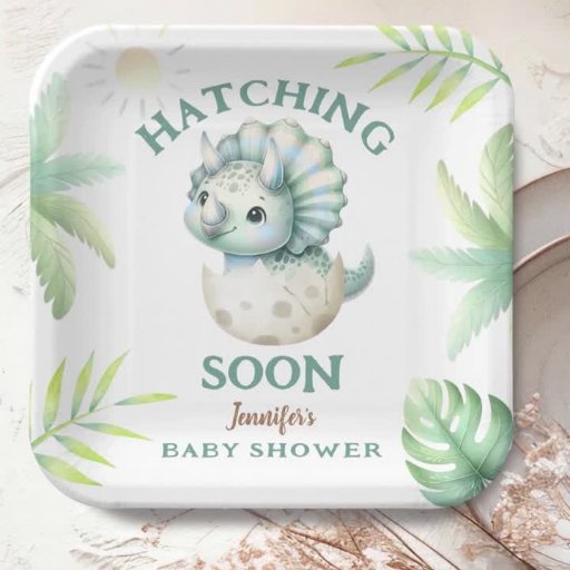 Hatching Soon Triceratops Boy Dinosaur Baby ShowerDiseñado por H-Art Studio Design