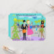 ¡Mele Kalikimaka! ¡Esta invitación hawaiana retra adaptable de la fiesta de Navidad ofrece un dibujo minimalista del dibujo animado de un par atractivo que toma el viaje del día de fiesta de un curso de la vida! La escena moderna de los mediados de siglo se fija en un aeropuerto tropical. Sr. y señora Tourist están presentando delante del piso a las paredes de cristal del techo. Con todo quieren documentar cada momento de sus vacaciones al paraíso. Visten a Sr. Tourist en un juego negro, una camisa azul clara, un lazo rojo, y un sombrero de ala negro. Él está sosteniendo una maleta anaranjada. Su brazo está alrededor de su novia hermosa. Ella está llevando un vestido de las rosas fuertes. Un bolso azul brillante se lanza con una honda sobre un brazo. Un gorra de Santa está honrando a su cabeza rubia. ¡No haría para viajar por el aire y para no mirar su mejor! Ambos ellos están llevando leis coloridos de la flor alrededor de sus cuellos. Al lado de ellos, vemos un atontamiento, chica de hula pelado de oro con el pelo negro que fluye. Srta. Hula está llevando una falda de hierba tradicional. Su top del hula tiene una torsión festiva, sin embargo. Su top bikini es rojo con el ajuste blanco. ¡Coma su corazón nuestro, señora Claus! En vez de una flor, ella está llevando una puntilla del acebo en su pelo. En un brazo, ella tiene leus hawaianos adicionales listos para ofrecer a la persona siguiente para caminar del avión. ¿Ah, no puede usted ahora oler las orquídeas? En el lado opuesto de los pares, hay un árbol de navidad que se ha dado un cambio de imagen de la isla. El cedro feliz es cubierto hacia fuera con los seashells y las estrellas de mar en colores pastel. En el lado opuesto del vidrio, podemos ver el avión de lujo, enorme que trajo los pares a su destino de las vacaciones. En la pista de despeque, el asistente de vuelo del estilo de los años 60 está haciendo su manera al edificio. Ella está llevando un ajuste de forma, el uniforme del azul y un gorra azul del fortín. ¡Yowza! ¡Ese blonde magnífico puede ofrecerme el café, el té, o la leche en cualquier momento! ¡El cielo una sombra de la aguamarina que hace que usted quiere alcanzar para el aceite del bronceado! Podemos ver las siluetas verdes de palmeras y la silueta azul marino de un vuelo plano entre las nubes mullidas, azules claras. ¡Oh, espero que esos lechones pobres en ese avión no estén en su manera de nuevo a la rutina diaria! ¡Hawaiana! El lado opuesto ofrece la aguamarina fondo y un montón del sitio para personalizar con sus específicos del fiesta.