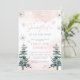 ¡Un pequeño copo de nieve está en camino! Invitación a la ducha de bebé Rubor con copos de nieve de pinos y un diseño de boho.