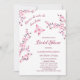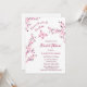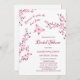 This bridal shower invitation features the text: "Because he makes her heart flutter " and a hot pink butterfly and cherry blossoms on a white background. Romantic bridal shower invitation in an elegant calligraphic script.