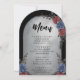 Bring the supernatural to your wedding night with this frightful "I See Wed People" menu. With it's headstone and moody blue and red floral arrangements, it's the perfect stationary to prepare for a haunted Halloween wedding extravaganza. Perfect for couples who plan to tie the knot in the spooky season or for anyone who loves a gothic twist.