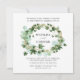 Una bella y elegante invitación a la boda botánica con un diseño de marco con un diseño de marco en verde acuarela y fuente gris clásica con acento de caligrafía de moda. Sus nombres aparecen en letras grises, enmarcadas por unas hojas geométricas de hiedra exuberante, una bola de nieve y un follaje eucalipto sobre un fondo blanco crujiente. Elija este diseño para bodas de invierno elegantes, nupcias de otoño o otoño, o bodas nocturnos en verano, o para bodas con temas de jardín en cualquier época del año. Artículos coincidentes disponibles en nuestra colección Hedera. Para obtener ayuda o solicitar personalizado, póngase en contacto con nosotros a través de la tienda o escriba en citronelladesign@gmail.com