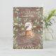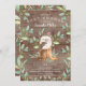 Invitación a una ducha de bebé con un hervidero dulce con mamá sentada en un trozo de árbol y enmarcada con hojas de color verde natural sobre un fondo rústico. Haga girar nuestra invitación para ver una hoja verde a juego para un toque especial.