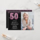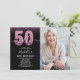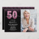 Hello 50! Invite your friends and family to celebrate the 50th birthday with this modern design. The design features a black background, the numbers thirty in faux pink glitter, with an elegant pink glitter background, elegant calligraphy script, a modern birthday template that's easy to personalize, and the option to add a photo to the reverse. Don't think about it and get yours now.