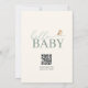 Hello Baby Boy Clothesline Boho Baby Shower Invitation. Celebrate the arrival of your precious little one with these charming 'Hello Baby' baby boy shower invitations. Featuring a beautiful boho watercolor design of baby clothes gently hanging on a line, this invitation evokes a sense of warmth and anticipation. The soft blue and green hues and greenery complemented by a sweet little bird accent, create a tender and serene atmosphere. Perfect for a baby boy's shower, these invitations are designed to share the joyous news and invite loved ones to celebrate this special milestone. Make this a memorable beginning to your baby's journey.. Add extra details on the back with your own custom QR code that you can link directly to your registry details. Make your bohemian baby boy shower unforgettable with this beautiful and unique design.