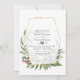 Invitación a la cena de un ensayo de vegetación de bosques que incluye hierbas silvestres, helechos, hojas y eucaliptos con personalizable geométrico de marco dorado a los detalles del evento.