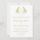 This design features elegant golden and white heritage wedding theme, designed with a botanical crest, soft metallic-style gold typography, and timeless classic borders. The delicate engraved floral on the back create a luxurious fine-art look inspired by vintage heirloom stationery.