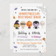 ¡Celebra una fiesta de cumpleaños espumocrásica que es el doble de diversión! Únete a nosotros para una emocionante fiesta de cumpleaños de Halloween mientras celebramos dos cumpleaños especiales en un evento mágico. Es un tema espeluznante y emocionante, perfecto para niños y hermanos. La invitación de cumpleaños de nuestros lindos gemelos marca la pauta para una aventura memorable y espeluznante. Prepárate para un fiesta lleno de sorpresas, disfraces y diversión aterradora.