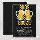 Esta divertida y genial invitación para la despedida de soltero es perfecta para los chicos. Cuenta con vasos de cerveza pintados a mano en amarillo, blanco y azul que chocan con el dicho "Bros and Booze" (Amigos y alcohol), sobre un fondo negro con patrón abstracto. Es moderno, varonil y divertido; el diseño perfecto para tus amigos.