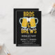 Esta invitación genial y divertida para la despedida de soltero es perfecta para los chicos. Cuenta con vasos de cerveza pintados a mano de color amarillo, blanco y azul que chocan con el dicho "Bros and Brews", sobre un fondo con patrón abstracto negro. Es moderno, varonil y divertido; el diseño perfecto para tus amigos.