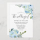 Invitación Hermosa acuarela azul Flores Boda moderno