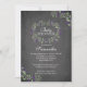Comience con su ducha moderna de chica para bebés con o con una hermosa invitación a la ducha de bebé a bordo de una tiza floral. Nuestra elegante invitación a la ducha de bebé chicas incluye un marco de hojas verdes de bonito adornado con pequeñas flores violetas colocadas sobre un fondo de tiza negro de moda. Hermosa invitación para una bebé con un toque de época y un toque moderno. Perfecto para una ducha primaveral, una ducha de bebé de verano, una ducha de bebé en otoño o una ducha de bebé de invierno. Visite nuestra tienda para ver esta invitación elegante y única en una variedad de colores.