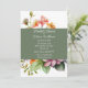 Bonito invitación a la ducha de novia hecha en blanco, con flores silvestres de colores. Una banda verde musgo recorre el centro de la invitación y sirve como área de texto. Personalice el texto blanco del personalizado para adaptarlo a sus necesidades de eventos.