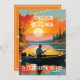 Celebrar la vida de un ser querido cuya pasión era la pesca. Este colorido diseño tiene a un hombre en un bote en un lago al atardecer.