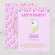 Invitación hermosa del cumpleaños del unicornio. Jefe precioso del lunar del multicolor, unicornio con el arco iris tricolor y modelo de estrella en el fondo violeta. El lado trasero tiene los lunares y el número 3 del multicolor que se pueden también personalizar en el fondo violeta. Todos los textos y números pueden ser personalizados.
