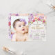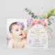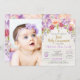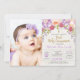 Elegante primera invitación a la comunión sagrada con flores de color morado/lavanda y letras falsas de oro.
