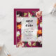 Una hermosa invitación a la boda con un personalizable El diseño de Save The Date incluye rosas frescos, ranunculus, dahlias, chiringuitos y begonias en tonos burdeos, naranjas, blancos y rosas, mostrados en un fondo rojo magenta. El lenguaje de las flores, conocido como floriografía, asigna significados diferentes a los diferentes tipos y colores de las flores. Por ejemplo, los rosas representan el amor; las begonias simbolizan la armonía; las dahlias significan el compromiso; el ranunculus representa el encanto; y los pardos significan gracia.