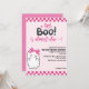 Presentamos nuestro "Spooky lindo y bonito boo con ducha de bebé color rosa Invitación " - la mezcla perfecta de adorable y espeluznante para la celebración de la llegada de tu pequeño! Esta invitación tiene un encantador personaje fantasma con una proa rosa en un suave tono rosa, diseñado para capturar el espíritu caprichoso de una ducha de bebé espeluznante con un toque lúgubre y espeluznante