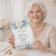 Celebre un hito notable con esta elegante invitación de cumpleaños número 99 que presenta magnolias azules suaves, peonías blancas cremosas, vegetación delicada y arte floral atemporal. Perfecta para honrar a una querida mamá, abuela o mujer especial, esta invitación personalizable le permite editar fácilmente el nombre, la fecha, la hora y los detalles de la ubicación. Ideal para fiestas de jardín, almuerzos de té y celebraciones clásicas, se puede pedir como invitación impresa o descarga digital conveniente. Un hermoso diseño de recuerdo para una memorable celebración de cumpleaños número 99.