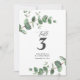 Hermoso diseño delicado y elegante de número de mesa de boda con follaje de eucalipto económico. Moderno y elegante en tendencia, verde salvia, negro, azul marino y blanco, colección rústica contemporánea elegante. Ideal para bodas de primavera, verano, otoño o invierno.