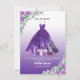 ¿Estarás luciendo un tema de quince púrpura? Invita a tus Damas a la gran fiesta con estilo. El diseño cuenta con hermosos vestidos de quinceañera púrpura y flores púrpuras.