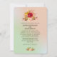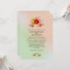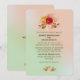 Una invitación de boda con un espacio en la parte posterior para el sitio web de su boda. Con un hermoso diseño floral de flores silvestres con flores en rojo y amarillo, contrastado con hojas y ramitas rosadas y marrones. Puesto en un fondo degradado de verde menta y rosa coral claro.