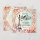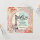 Bellas perlas rosadas, encaje y torre Eiffel. Esta elegante invitación de bautizo de París en tonos melocotón, rosa y azul teal se personaliza fácilmente para tu evento.