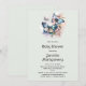 Una invitación de baby shower con un trío de mariposas revoloteando entre algunas flores bonitas. Esquema de colores azul rosa y verde.