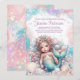 Invitaciones de baby shower de sirena con una hermosa sirena bebé joya en un bonito fondo de burbujas pastel y conchas. Esta invitación de baby shower de sirena se personaliza fácilmente para su evento simplemente agregando sus detalles. También puede agregar un color de fondo al frente y atrás.