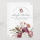 La invitación a una boda sencilla y de moda incluye hermosas flores de barro de terracota, ciruela y boho blanco y hojas con tipografía de guion de bonito sobre un fondo blanco. Por favor vea esta moderna colección de bodas para coordinar accesorios de correo.