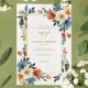Elegante invitación a la boda, con hojas de acuarela y flores en tonos suaves de rojo, azul, verde y crema. La composición refinada, la tipografía simple de los séricos y una paleta de colores de moda suave crean un toque sofisticado, perfecto para bodas durante todo el año. Las líneas depuradas y el diseño contemporáneo con productos botánicos de bienvenida le dan un toque de elegancia. ❀ ❀ elementos de texto son fácilmente personalizables. Sin embargo, por favor contacte para obtener ayuda en la personalización o adaptación del diseño a sus deseos individuales. Además, puede buscar ayuda para crear productos relacionados y crear su suite de papel boda perfecta.