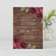 Invitación Hermoso Boda Rústico de Flores Rojas de Borgoña