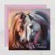 Dos hermosos caballos y el texto, "En nuestro camino para siempre", adornan el frente de esta hermosa tarjeta de aniversario.
