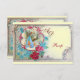 Elegante, colorido, vibrante diseño floral de estilo vintage con un bebé y cigüeña voladora entre las hermosas rosas romanas, rosas rojas, flores verde azuladas de primavera azul y una brillante piedra de piedra en 3D de Bulgan Lumini (c). Fácil de personalizar con su propio texto e inizials para duchas de bebé, fiestas de cumpleaños para niños o casi cualquier evento que desee.