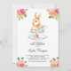 Invite a la familia y amigos a su bebé rociar con esta invitación a la fiesta de té. Cuenta con un conejito adorable en las tinas con arreglos florales. Esta invitación floral es perfecta para las duchas de primavera. Los elementos coincidentes están disponibles.