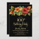 Invitación Hibiscus Floral Black 100 cumpleaños
