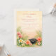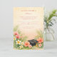 A soft parchment backdrop is framed by lush tropical greenery and coral hibiscus blooms, creating a fresh yet elegant celebration aesthetic. Delicate plumeria accents and airy palm leaves bring a warm, destination-inspired feel, while the classic typography keeps the layout refined and timeless. A subtle graduation cap detail grounds the design with just the right academic touch.