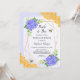 Estas invitaciones a la ducha de novias presentan un diseño floral de acuarela con flores de horangea violeta, hojas, abejas, pepitas de miel y un marco geométrico de oro falso. También hay productos de coincidencia.