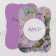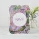 Elegante acuarela floral de hortensias en tonos azules, lilas y rosas. Abre espacio para un RSVP delante y detrás edita tu texto.