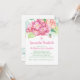 Invitación al bautismo chica con hidrangea rosa de color de agua y flores de peonía.