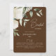Invitación a la ducha de novia con hidrangea blanca marrón y crema. Tipografía crema. Diseño moderno y fuente. Elegante. Marrón chocolate y crema.