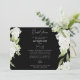 Invitación a la ducha de novia Hydrangea blanca. Tipografía blanca. Diseño moderno y fuente. Elegante. Blanco y negro. Horizontal.