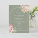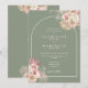 Pampas florales verde salvia Boho, aguadas de hierba y marco de arco chic enmarcan los detalles de su celebración de boda especial en tipografía elegante con iniciales de monograma en el reverso de esta elegante invitación de boda. Diseñado por Thisisnotme©