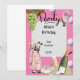 Hierro de golf con pelota por todas partes sobre rosa para golfista Invitación