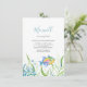 Esta invitación a la fiesta de cumpleaños de un niño tropical muestra el nombre de su hijo puesto en una tipografía de escritura elegante con letras a mano en azul turquesa con detalles del evento en una fuente serif de color gris carbón gris sobre un fondo blanco crujiente con un borde inferior de mi agua pintada a mano color de agua de peces tropicales, pez estrella, coral del mar y algas. La tarjeta de invitación se revierte a un color azul gratuito. Una idea única pero bonita para el tema de la fiesta de cumpleaños "Under The Sea" o "beach party". Para ver toda esta suite de Victoria Grigaliunas visita www.zazzle.com/dotellabelle