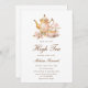 Elegant bridal shower invitation featuring a pastel teapot and tea cups illustration with gold accents paired with serif and script fonts in which your personalized information is written in. Check out our store for more items from this collection.