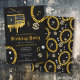 A hip hop 80's 90's style gold Cuban link chain and retro radio birthday party invitation design perfect for birthday parties with a hip hop theme. Customize this hip hop birthday invitation with your text. Hand drawn Cuban link chain and accessories on a black background.